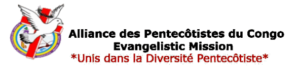 L’Alliance des Pentecôtistes du Congo Evangelistic Mission est une association des Églises et des organisations pentecôtistes qui confessent Le Seigneur Jésus-Christ en tant que Dieu et Sauveur, selon les Écritures, et cherchent à accomplir leurs appels communs à la gloire de Dieu unique, Père, Fils et Esprit Saint.